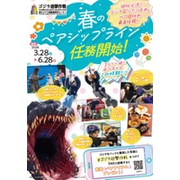 大迫力のゴジラに向かって“ふたりで”絆ジップライン! 「春のペアジップライン ~ゴジラを監視!記録写真をUPせよ!~」 3月28日(土)~6月28日(日)期間限定で開催
