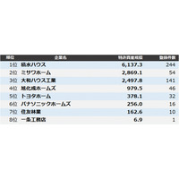 【ハウスメーカー】特許資産規模ランキング2025 トップ3は積水ハウス、ミサワホーム、大和ハウス工業