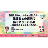 『教職員向けネットいじめ対策セミナー』 好評につき4月も開催! 「保護者との連携で防ぐネットいじめ~年度初めに伝えるべきこと~」