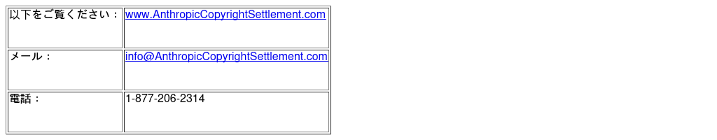 和解に含まれるすべての書籍の詳細と検索可能なデータベースは、www.AnthropicCopyrightSettlement.comでご覧いただけます。