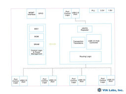 複数のUSBフルスピード(FS)デバイスが同時に動作する際のスループットを大幅に向上させるMTT(マルチ・トランザクション・トランスレータ)アーキテクチャを特長とする4ポートUSB2.0 Hubコントローラで、今後投入を予定しております。VL122とピン互換性を備え、VL122と同様SMBusまたはEEPROM経由で柔軟なconfiguration managementのサポートが可能です。