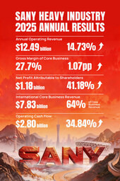 北京、2026年4月11日 /PRNewswire/ -- SANY Heavy Industry(600031.SH、06031.HK)は2025年度の決算を発表しました。売上高は前年同期比14.73%増の124億9,000万ドルとなりました。親会社株主に帰属する純利益は41.18%増の11億8,000万ドルに達しました。営業活動によるキャッシュフローは、前年同期比34.84%増の28億ドルとなりました。