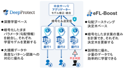 図1. DeepProtectとeFL-Boostの比較と金融分野の適用例