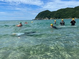 今年は7月18日(金)~21日(月・祝)、鳥取県岩美郡岩美町の東浜海水浴場で実施しました。本学の遠泳実習は約50年以上の歴史を有する伝統的な授業となっています。実習場所を鳥取県岩美郡岩美町の東浜海水浴場に場所を移してから、4回目の遠泳実習の開講となりました。