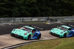 6月に行われた24時間レースでは悲運のダブルリタイヤとなったファルケンモータースポーツチームは、ファルケンカラーに彩られた2台のポルシェを再び万全な状態に整え、メンバー全員が前を向いてこの第6戦に臨みました。