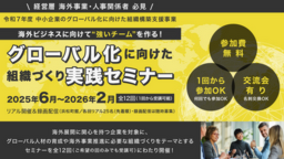 海外展開に関心を持つ企業の皆様を対象に、東京都中小企業振興公社は、グローバル人材の育成や海外事業推進に必要な組織づくりをテーマとする全12回(ご希望の回のみでも受講可)のセミナーを開催します。後述リンクから第4回、第5回申し込みを絶賛受付中です!