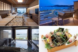 誇ります。夕食はこれらの豊かな漁港で水揚げされた新鮮食材を用いたお造りなど、和会席膳をお席に