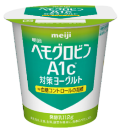 左から「明治ヘモグロビンA1c対策ヨーグルト」(112g)