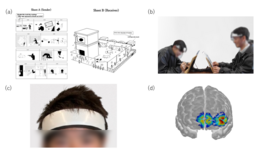 早稲田大学国際学術院の鈴木祐一(すずき ゆういち)准教授、富山大学の野澤孝之(のざわ たかゆき)教授、東北大学の内原卓海(うちはら たくみ)准教授(ディスティングイッシュトアソシエイトプロフェッサー)、玉川大学の中村幸子(なかむら さちこ)講師、東京大学先端科学技術研究センターの宮﨑敦子(みやざき あつこ)特任研究員、東北大学の鄭嫣婷(じょん ひょんじょん)教授の研究グループは、日本人英語学習者80名(40ペア)を対象に、語彙練習のタイミングが学習成果と対話中の脳活動に与える影響を検証しました。脳活動の計測には、fNIRS(※1)という装着型の装置を用い、ペアの脳の同調度(シンクロ)を比較しました(図1)。