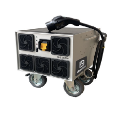 電知が提供するサービスは、持ち運び可能な機器(下イメージ図)を用いることで短時間・非破壊のバッテリー診断を可能にし、リサイクル現場や中古車販売店、整備工場など、場所を問わず迅速なバッテリー評価を実現します。診断には電気化学に基づく「電気化学インピーダンス法(注2)」を採用し、一般的なSOH測定(注3)では測定できない電池そのものの劣化度合いを直接計測します。これにより、バッテリーのリユース・リパーパス・リサイクルの正確な判断が可能となります。さらに、この診断機器を用いた放電処理サービスも提供しており、リサイクル現場における発火リスクの低減や安全な保管・輸送を支援します。