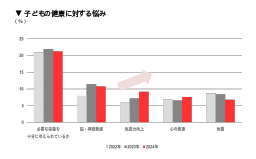 「子どもの健康に対する悩み」についての当社の調査※3では、「必要な栄養を十分に与えられているかどうか」という悩みを抱えている方が最も多く、「免疫力の向上」に関する悩みを持つ方は年々増加していました。