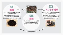 環境省のプロジェクトで機器(コーヒーグラウンズを乾燥させる乾燥機、乾燥したコーヒーグラウンズをペレット状にする成型機、コーヒーペレットを燃料として使用できる焙煎機)を開発。廃棄物ゼロとGHG排出量削減を目指し、コーヒーグラウンズを乾燥させてペレット状の燃料に成型し、そのペレットを使用してコーヒーを再び焙煎する持続可能な取り組み=グリーン焙煎を実現しました。