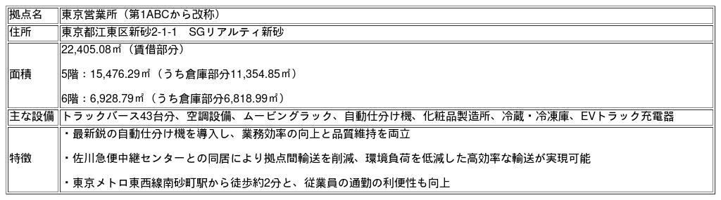 また、SGホールディングスグループ各社の主要拠点が集積する江東区新砂に移転することで、グループ内のシームレスな連携により、従来よりもさらに利便性の高いサービスの提供を目指します。