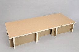 災害に見舞われた中で命と健康を守るためには、睡眠と休息の確保が不可欠です。近年は避難所用の寝具として段ボール製ベッドの導入が進んでいますが、段ボールは水や湿気に弱いため、長期保管が難しく、繰り返しの使用が困難といった問題が指摘されています。そこで優れた断熱性と防湿性・防水性を併せ持つ建築用断熱材「アキレスボードPE」を使用し、軽量・強靭(きょうじん)で長期の使用・保管に耐える避難所用ベッドを開発しました。