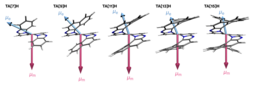 図3.理論計算により得られた分子長に伴う遷移双極子モーメントの配向変化