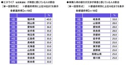 それぞれの項目について節約として行っている人の割合を都道府県別にみると、【自動車購入費の節約】では1位は福井県(57.0%)、2位は愛知県(56.0%)、3位は兵庫県と奈良県(いずれも54.0%)、【ガソリン代の節約】では1位は岩手県(70.0%)、2位は長野県(66.0%)、3位は愛知県(65.0%)、【ドライブ費用の節約】では1位は福井県(57.0%)、2位は長野県と愛知県(いずれも56.0%)、【車検・メンテナンス費用の節約】では1位は福井県(55.0%)、2位は岩手県(51.0%)、3位は長野県と沖縄県(いずれも49.0%)、【自動車保険料の節約】では1位は兵庫県(51.0%)、2位は奈良県(49.0%)、3位は新潟県・愛知県・山口県(いずれも48.0%)でした。