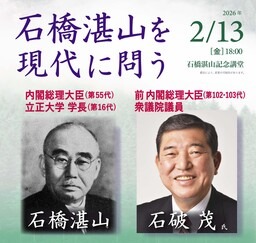 立正大学(東京都品川区/学長:北村行伸)は、2026年2月13日(金)、前内閣総理大臣・衆議院議員の石破茂氏を迎え、公開講座「石橋湛山を現代に問う」を品川キャンパスにて開催します。