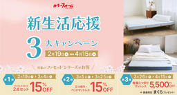 本キャンペーンでは、新生活準備のタイミングやライフステージに合わせ、特典内容の異なる3つのセールを展開。睡眠の質にこだわった「ファセット®(FACET)シリーズ」を、期間限定の特別価格および特典付きで提供いたします。