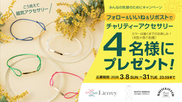磁気健康ギア「Colantotte(コラントッテ)」の製造・販売元である株式会社コラントッテ(本社:大阪市中央区、代表取締役社長:小松 克已)の女性の不調に寄り添うブランド『 Lierrey(リエリィ)』。本ブランドが展開する「チャリティーアクセサリー」は商品代金の10%が国際協力NGOジョイセフのホワイトリボン活動に寄付されます。ホワイトリボンの取り組みがさらに広がるよう、国際女性デーの3月8日よりXキャンペーンを実施いたします。