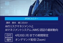 一般財団法人日本情報経済社会推進協会(以下JIPDEC)は、2026年4月20 日まで、JIPDECセミナー「AIのリスクマネジメントとAIマネジメントシステム(AIMS)認証の最新動向」をオンデマンド配信いたします。