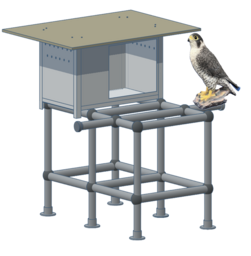 展示内容:人工巣(実物)1台、 デコイ(ハヤブサの模型)、解説パネル