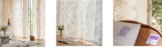 北欧ラグジュアリーUVカット蝶刺繍ボタニカルミラーレースカーテン