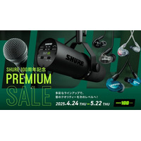 Shure(シュア)は4月24日(木)から5月22日(木)まで、「Shure 100周年記念 プレミアムセール」を…