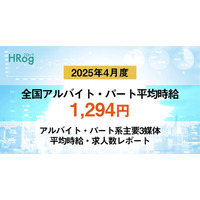 全国アルバイト・パート平均時給は「1,294円」【2025年4月度 アルバイト・パート 平均時給・求人数レポート】