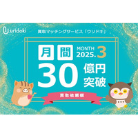 【ウリドキ】1ヵ月の買取依頼額が30億円を突破