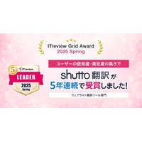 「ITreview Grid Award 2025 Spring」でウェブサイト翻訳ツール「shutto翻訳」が5年連続受賞!