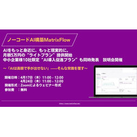AIをもっと身近に、もっと現実的に。ノーコードAIプラットフォーム「MatrixFlow」 月額5万円の“ライトプラン”提供開始中小企業10社限定 “AI導入促進プラン” も同時発表 説明会開催