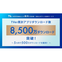 【TVer】累計アプリダウンロード数 8,500万ダウンロードを突破