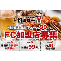 【FC加盟金は名物・金から串99円1本分】物価高の今、激安系酒場が強い!コスパ系居酒屋・均タローがフランチャイズ募集を本格化、「均タローFC加盟99プラン」を開始