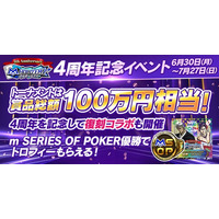 「m HOLD’EM(エムホールデム)」がアプリ リリース4周年!4周年を記念して、総額100万円相当のトーナメントや『ツインエンジェル』『海物語』『東京リベンジャーズ』の復刻コラボを開催!