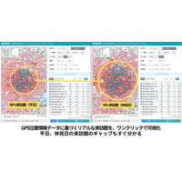 民間企業や自治体等におけるデータに基づいた戦略立案を強力に支援。平日・休日の来訪圏比較により、動的…