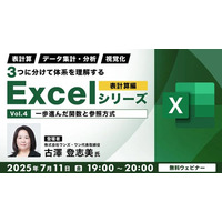 【Excel中級者】関数を発展させてより楽にデータ管理を!7/11(金)・7/31(木)無料セミナー「3つに分けて体系を理解するExcelシリーズ 表計算編」開催