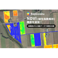 農業DX「レポサク」に「NDVI(植生指数)解析」機能を追加。高精度GPSと衛星データで収穫を支援。