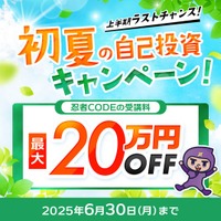 【5日間限定】プログラミングスクール「忍者CODE」で、初夏の自己投資キャンペーンを開催!