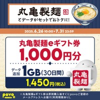 povo、「丸亀製麺eギフト券」がセットのデータトッピングを7月31日まで提供