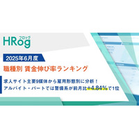 【2025年6月度】職種別 賃金伸び率ランキング求人サイト主要9媒体から雇用形態別に分析!アルバイト・パートでは警備系が前月比+4.84%で1位