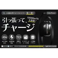 【最大30%オフ】【日本初上陸】USB-Cケーブルを持ち忘れる心配なし!手のひらサイズのケーブル収納式40Wハイパワーモバイルバッテリー「RulerPower」をクラウドファンディング開始!