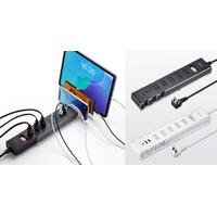 充電しながら機器を3台置ける、スライドスタンド付き電源タップを発売