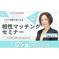 7月25日(金) 12時より、スキマ時間を活用して自分に合ったFPを探すことができる、佐藤のぞみ講師との「…