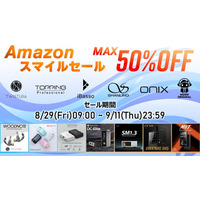 【株式会社MUSIN】8月29日(金)から開催される「Amazonスマイルセール」にて、取り扱いメーカーの『オーディオセール』を実施!新たなセール対象製品を含む、最大50%OFFのスーパーセール!
