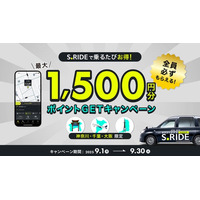 タクシーアプリ「S.RIDE(R)」で乗るたびお得!神奈川、千葉、大阪限定 最大1,500円分ポイントGETキャンペーンを開催
