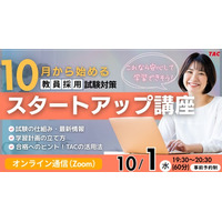 【TAC教員採用試験】オンラインで体験!「教採スタートアップ講座(10月生)」を10/1(水)に開催