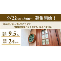 【想定年利9.5%】国内インカムゲイン型ファンド「猫専用個室ペットホテル ねこべや#02」に投資するTECROWD86号ファンドの募集開始