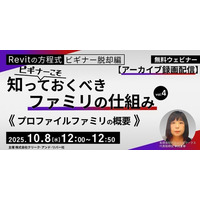 【初心者】Revitを基本から学べる無料のセミナーからアーカイブ映像を無料配信!10/8(水)10/22(水)「ビギナーこそ知っておくべきファミリの仕組みVol.4・Vol.5」