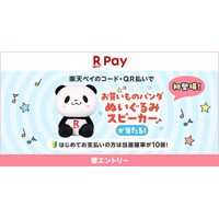 「楽天ペイ」、「お買いものパンダ」のぬいぐるみスピーカーが抽選で当たるキャンペーンを実施