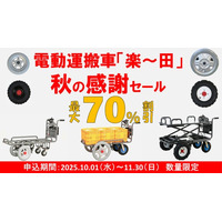 玄海農財通商、秋の特別感謝セールを開催 ─ 農業用電動運搬車および関連部品が最大50%OFF(10/1~11/30…